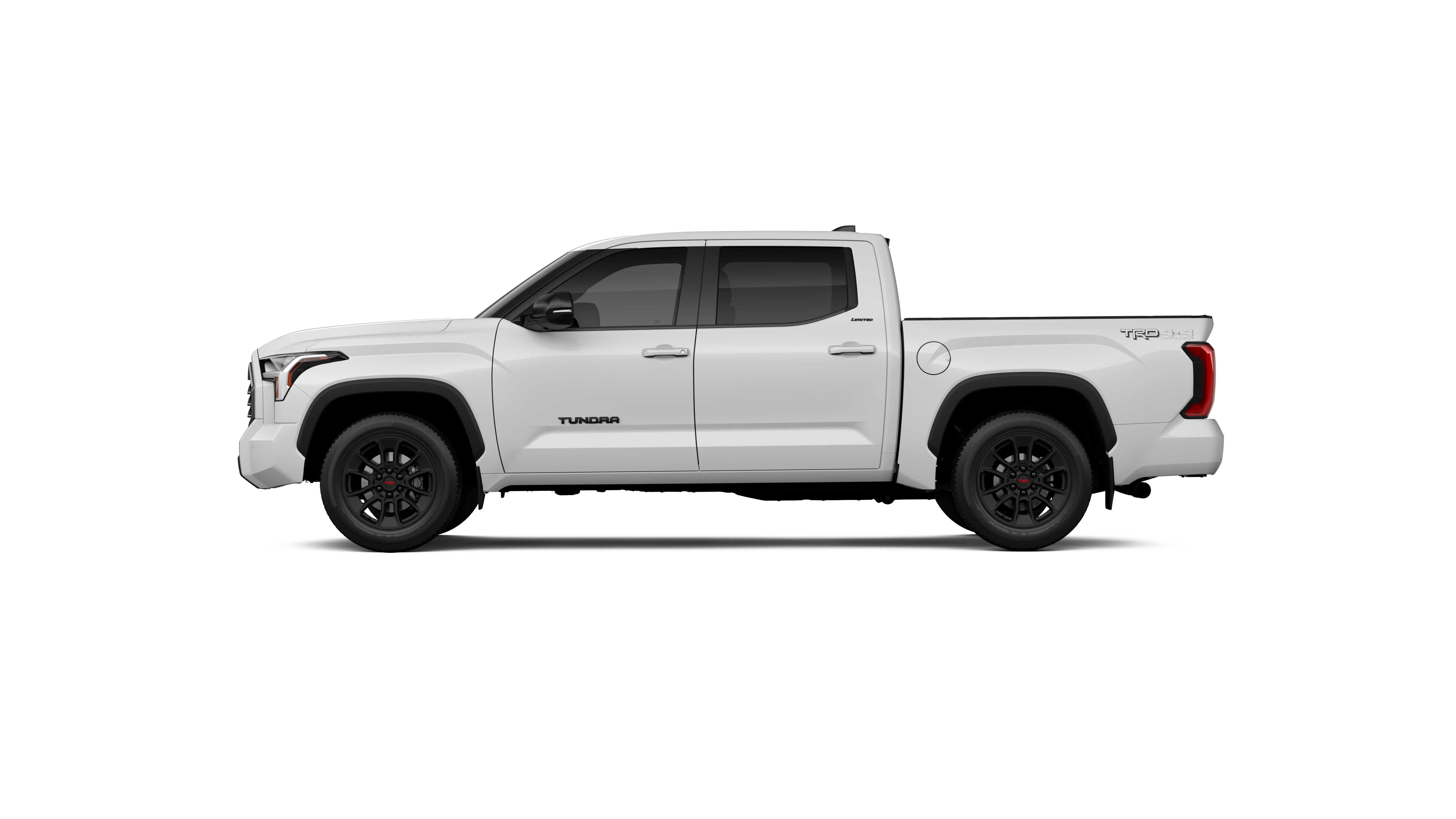 - Chrome "TUNDRA" and "LIMITED" door badges, door handles and window molding; color-keyed mirror caps and tailgate spoiler; gray-painted overfenders