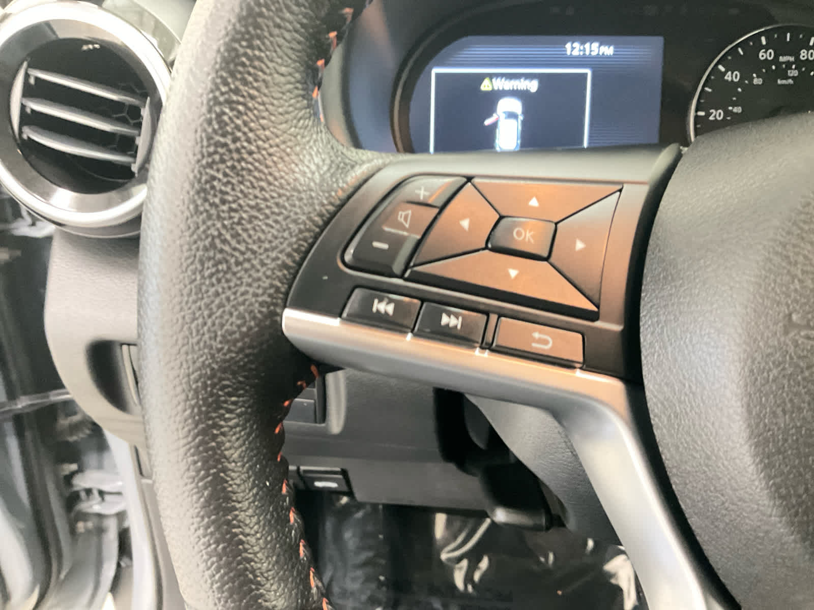 - Leather and metal-look steering wheel